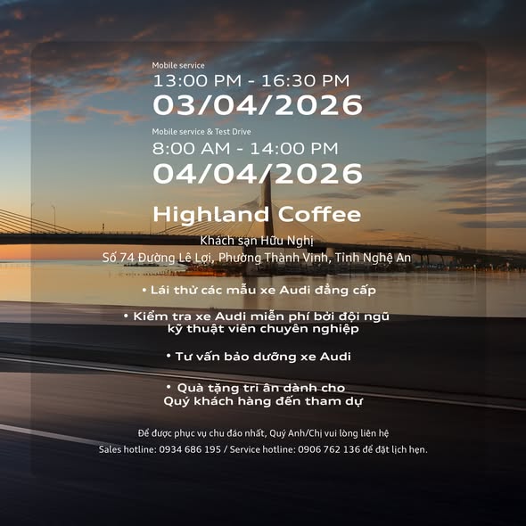 Dịch vụ bảo dưỡng lưu động Audi Khu vực Miền Bắc 2026